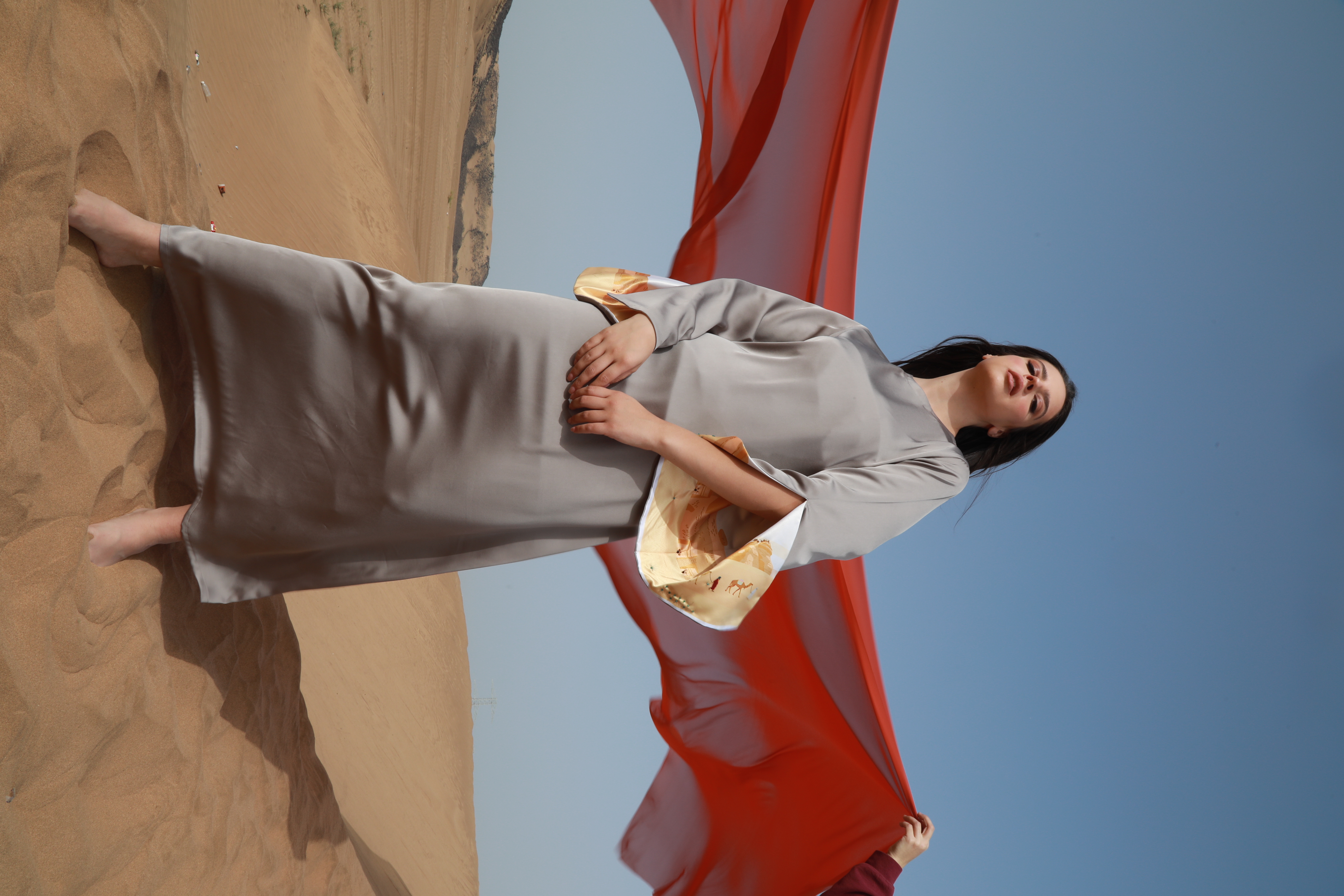 ارتقي بأناقتك مع ثوب حرير ناعمة برسمة الكم تصميم فريد وخامة فاخرة تجمع بين الجمال والراحة احصلي عليها الآن.