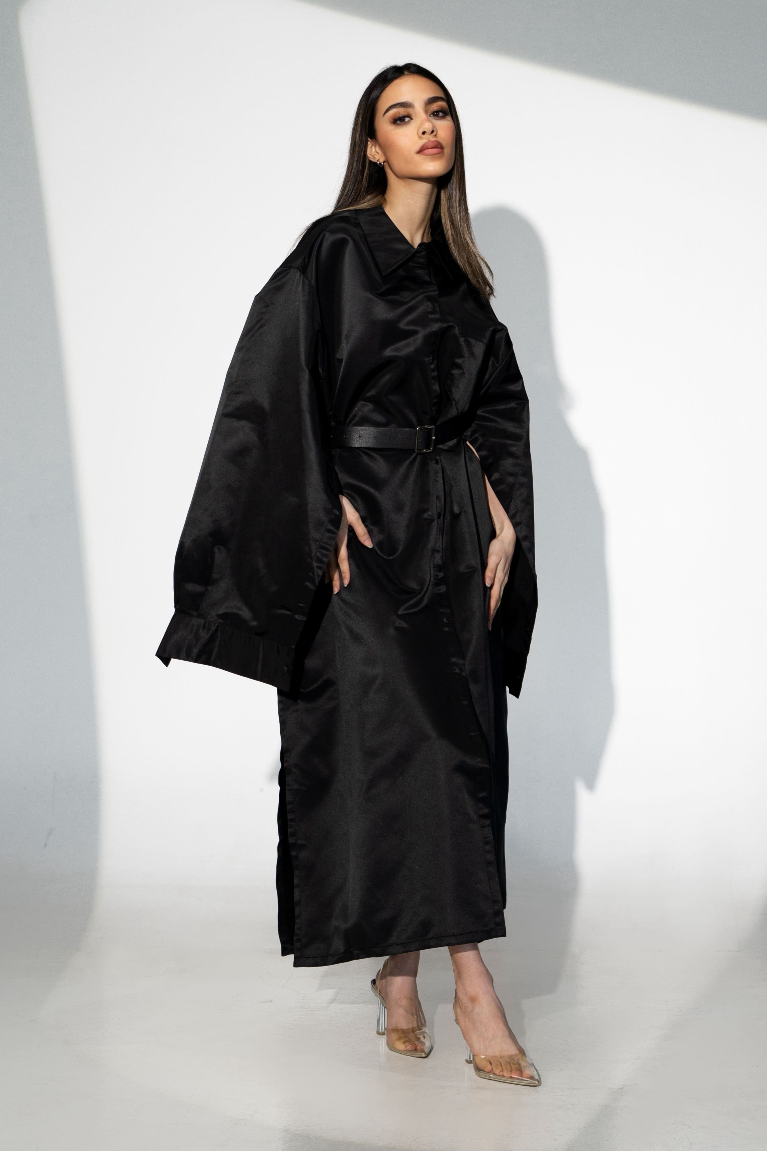 فستان اسود ستان تميزي بالدريس الأنيق الذي يجمع بين فخامة المعطف وجاذبية الفستان لتكوني محط الأنظار في أي مناسبة واختاري الأناقة الرفيعة وكوني مستعدة للتألق بكل ثقة ورقي في كل لحظة احصلي عليه الان من Adara .