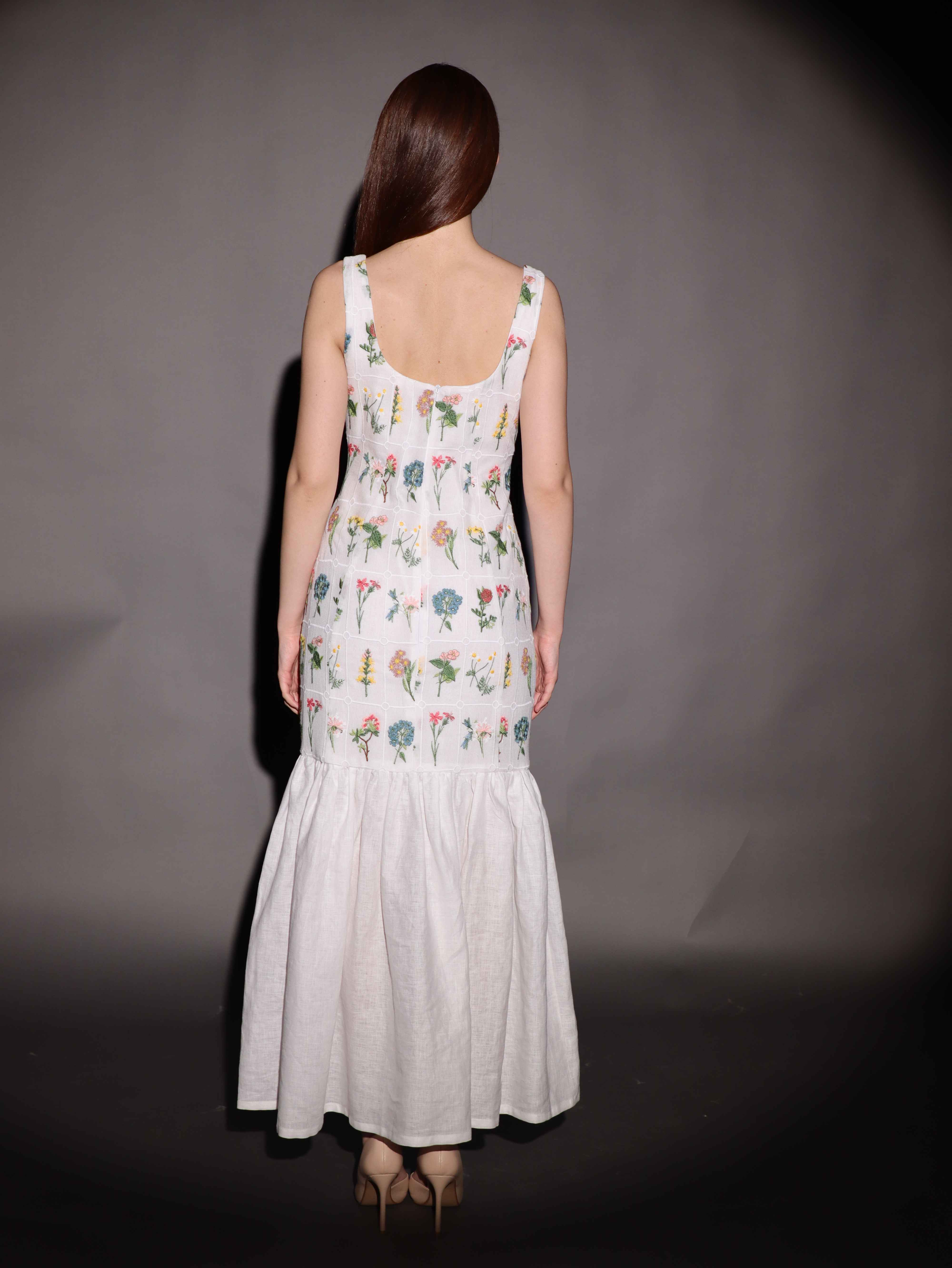 فستان أنثوي ناعم يجمع بين البساطة والرقي، بتصميم مستوحى من الطبيعة. يأتي بلون أبيض نقي مزين بتطريزات دقيقة لأزهار ملونة تضفي عليه لمسة حيوية وعصرية. يتميز بقصة ضيقة عند الخصر تبرز جمال القوام، وتنورة واسعة بتفاصيل ناعمة تزيد من إحساس الراحة والانسيابية.